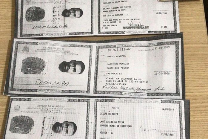 A polícia identificou pelo menos cinco identidades falsas no nome de Reinaldo. Todas tinham a foto dele, mas nomes e locais de nascimento diferentes, de municípios do interior de Alagoas e também do interior da Bahia.