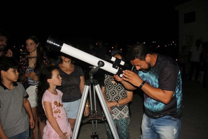 No primeiro momento houve sessão astronômica na cúpula do Planetário, em seguida um tour pelas dependências e, por fim, observação das estrelas e planetas no mirante, com direito a telescópio.