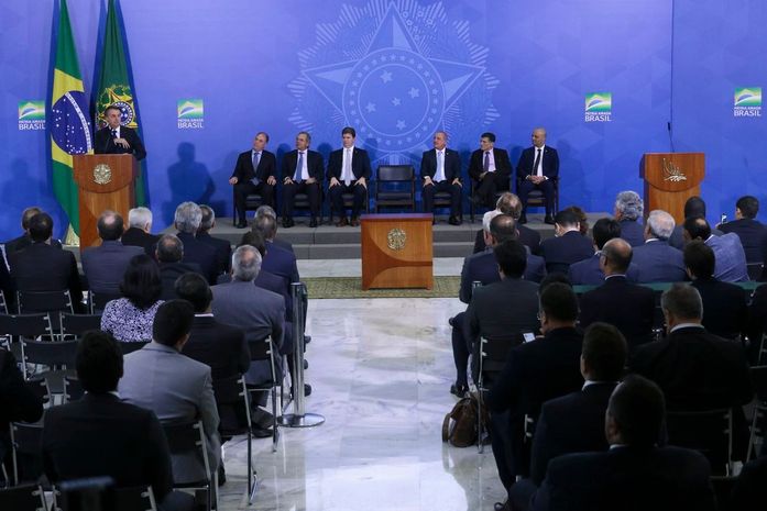 Em um rápido discurso lido durante a cerimônia, o presidente Jair Bolsonaro disse que os planos regionais de desenvolvimento cumprem um dispositivo constitucional e, por isso, representam um "marco histórico" para seu governo.