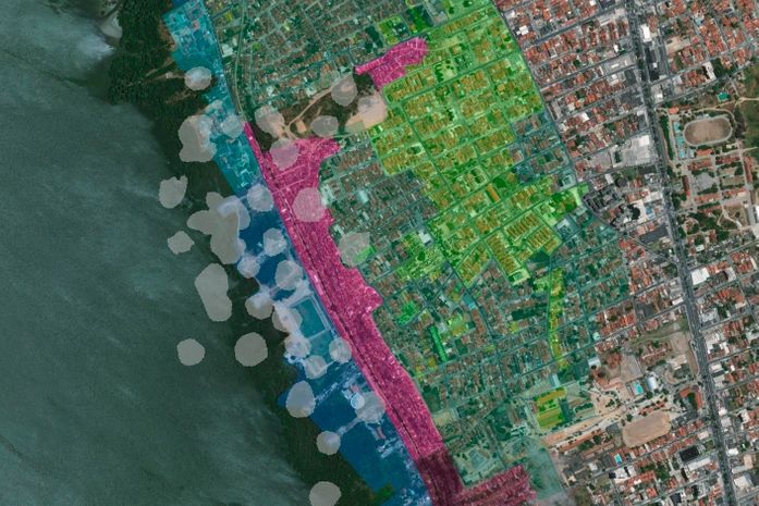 Conforme o mapa, as áreas amarela, laranja e vermelha do bairro Pinheiro, onde foram notificadas as primeiras evidências investigadas desde 15 de fevereiro de 2018, receberam uma recomendação de a realocação de moradores, o monitoramento dos processos erosivos e dos danos e alerta.