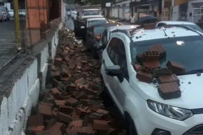 Ninguém se feriu. Três veículos foram atingidos pelos tijolos que caíram do muro. Um deles teve a lateral danificada.