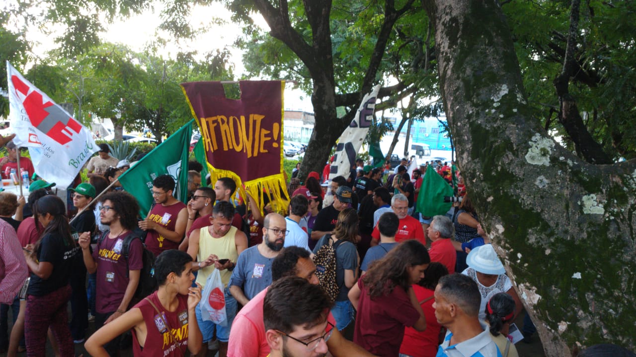 Sindicalistas, funcionários públicos, professores, estudantes e trabalhadores de diversas categorias participam na tarde desta sexta-feira, dia 14, na Praça Centenário, no bairro do Farol, do ato em favor da Greve Geral que acontece também em 26 cidades e na Capital Federal contra a proposta de reforma da Previdência que está em discussão na Câmara dos Deputados.
