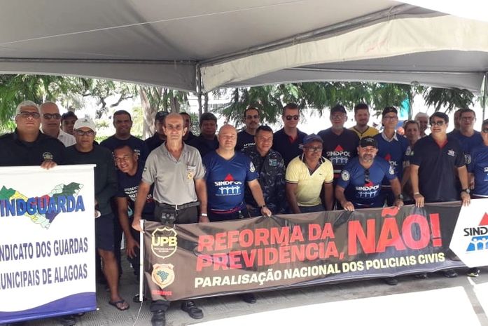 Forças de segurança pública do estado de Alagoas paralisaram as atividades na manhã desta terça-feira (25), no dia de mobilização nacional, na tentativa de sensibilizar deputados federais de Alagoas e o Governo Federal contra a Reforma da Previdência que tramita no Congresso Nacional.
