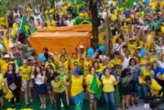 Durante a passeata eles cantaram o Hino Nacional, além de vários bordões a favor de Bolsonaro.