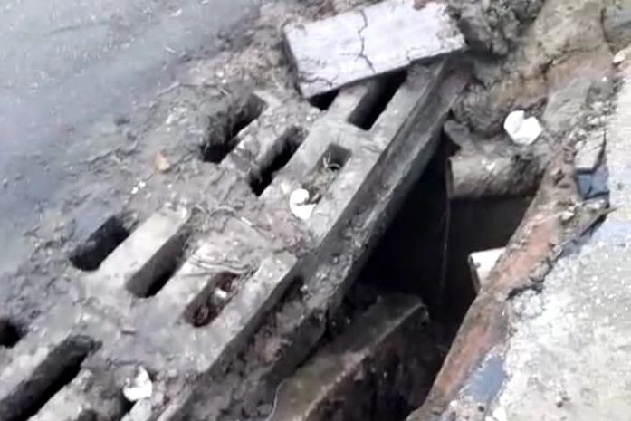 Um vídeo, divulgado pelo proprietário do estabelecimento, mostra o buraco a céu aberto, localizado no trecho de uma curva de grande movimentação de veículos.