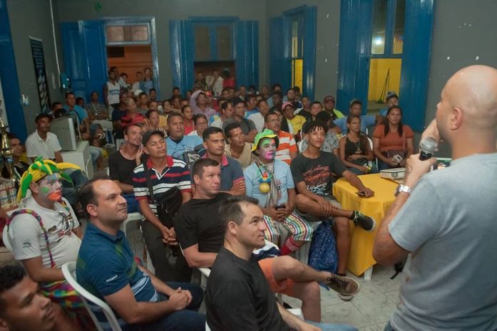Nesta quarta-feira (10), os vendedores participaram da primeira palestra motivacional ministrada pelo empresário Careca, que contou sua história de vida e como chegou a alcançar o sucesso, incluindo com sua experiência com venda de franquias em outros estados.