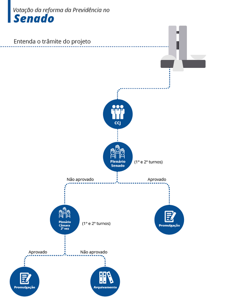 Recebida nesta quinta-feira (8) pelo presidente do Senado, Davi Alcolumbre (DEM-AP), a proposta de emenda à Constituição (PEC) que reforma a Previdência terá nesta Casa jornada mais curta do que na Câmara dos Deputados. O texto, que passou por duas comissões na Câmara antes de ir a Plenário, só precisa passar pela Comissão de Constituição, Justiça e Cidadania (CCJ) do Senado. Caso o cronograma previsto seja cumprido, a reforma deverá ser aprovada em segundo turno entre 20 e 30 de setembro.