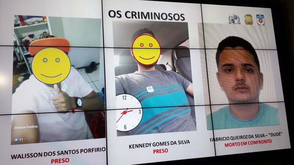 Foram presos Kenedy Gomes da Silva, 23 anos e Walisson Santos Porfirio, 23. Já José Mirosmar, de 24 anos está foragido. O suspeito que morreu durante o confronto com a polícia foi Fabrízio Queiroz da Silva, conhecido como Dudé.