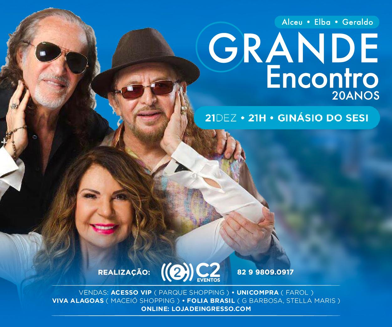 Elba Ramalho, Alceu Valença e Geraldo Azevedo trazem “O Grande Encontro” a Maceió. Com ingressos esgotados em sua última apresentação, que ocorreu em 2017, o trio volta a se apresentar na capital alagoana.