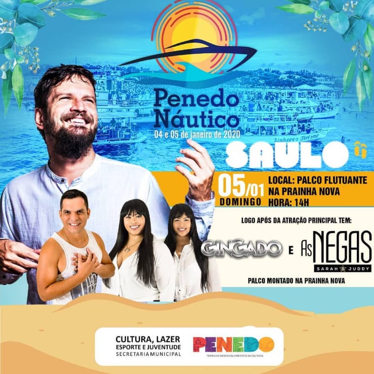 A festa já faz parte do calendário de eventos da cidade, o Penedo Náutico que teve sua primeira edição realizada em 2019, também promete animar os penedenses e turistas no primeiro final de semana de janeiro. A festa que acontecerá na ‘Prainha Nova’ e com palco flutuante nas águas do São Francisco, terá como grande atração e pela primeira vez na cidade, o cantor baiano Saulo.