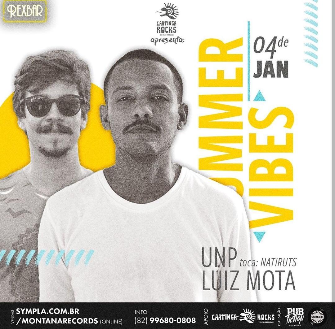 Caatinga Rocks apresenta, summer Vibes! A festa que tem a cara do verão, as bandas UNP fazendo o especial natiruts e Luiz Mota tocando o melhor do reggae mundial!