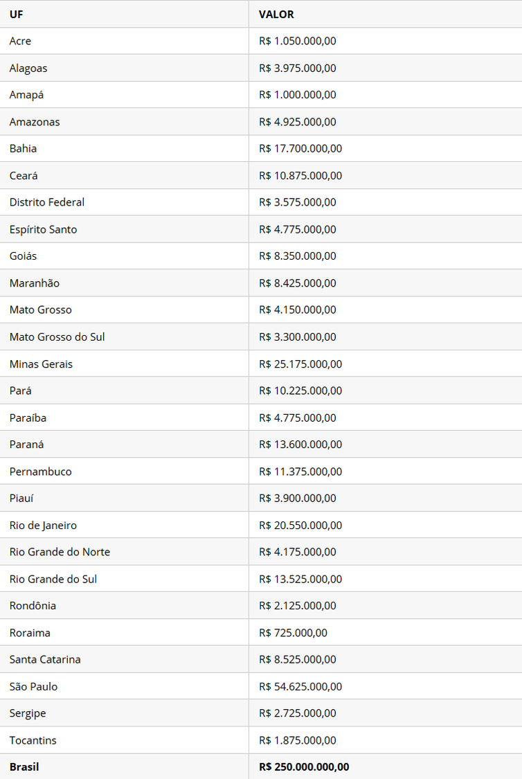 Os gestores estaduais, municipais e do Distrito Federal, responsáveis pela organização e a definição dos critérios que garantam o acesso do paciente aos procedimentos cirúrgicos eletivos, podem se programar para utilização os recursos de acordo com as demandas da população de cada estado. Confira o valor do repasse por estado.