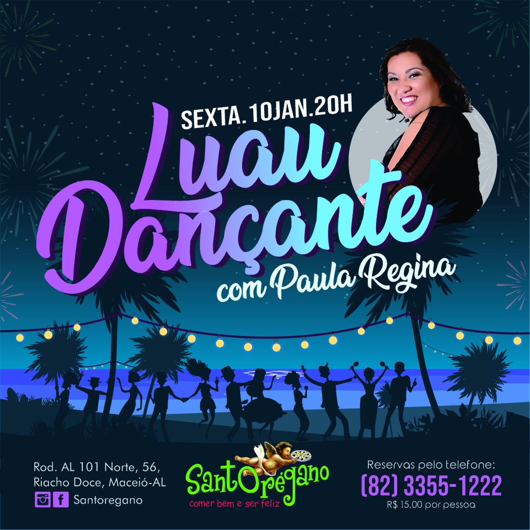 O Luau Dançante da Santorégano será nesta sexta, 10, a partir das 20h, seguindo o embalo do verão no clima de energia positiva da lua cheia. A programação conta com Paula Regina vocalista da Banda Golden Time para levar todo agito à pista de dança. Um momento de muita diversão onde o público passeia pelo repertório contagiante e eclético que vai tornar essa noite memorável no espaço aconchegante da Santorégano. Reservas limitadas.