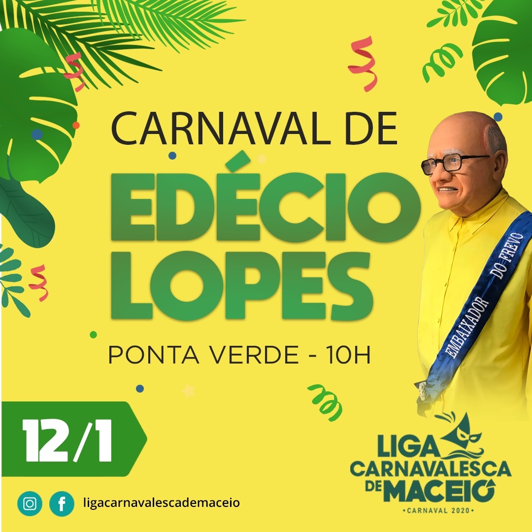 Agora é Carnaval e a abertura das prévias da Liga Carnavalesca de Maceió já acontece neste domingo, dia 12, com o Carnaval de Edécio Lopes. Uma homenagem ao radialista, escritor e compositor.