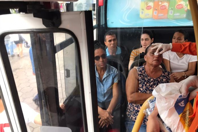 Segundo o passageiro, que preferiu não se identificar, a mulher que ficou ferida apresentava uma fratura no nariz, decorrente do choque entre o ônibus e o carro. Ainda não há maiores informações se mais alguém ficou ferido no acidente.