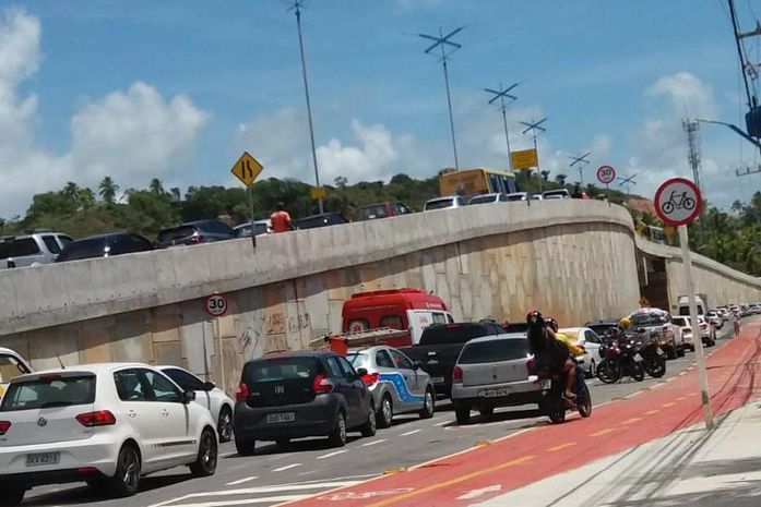O ponto de maior engarrafamento está na saída para o Litoral Norte nas imediações de Jacarecica.