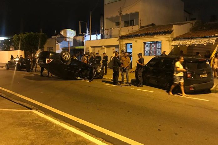Um delegado aposentado supostamente embrigado provocou um acidente e capotou com o carro no bairro da Pajuçara, parte baixa de Maceió, na noite dessa terça-feira (25).