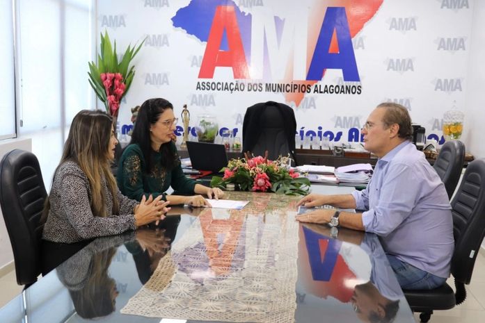 Com base em relatório técnico da Confederação Nacional dos Municípios, que aponta a viabilidade dos municípios, contra dispositivo da Proposta de Emenda à Constituição (PEC) 188/2019, que prevê, dentre outros pontos, a extinção de Municípios, a presidente da AMA, prefeita Pauline Pereira, pediu apoio ao senador Renan Calheiros, em nome dos cinco prefeitos de Alagoas, representados no encontro pela prefeita Paula Santa Rosa, de Belém.