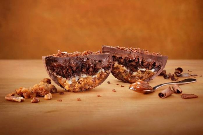 O ovo do Outback para a Páscoa deste ano é uma combinação inspirada em duas das sobremesas do restaurante, o Havanna Thunder e o Chocolate Thunder From Down Under. Por isso, o ovo é recheado por cinco camadas: brownie de chocolate com nozes pecans do Chocolate Thunder, cremes trufados de chocolate branco e de chocolate meio amargo, brownie de doce de leite Havanna com nozes pecans e ganache de doce de leite Havanna.