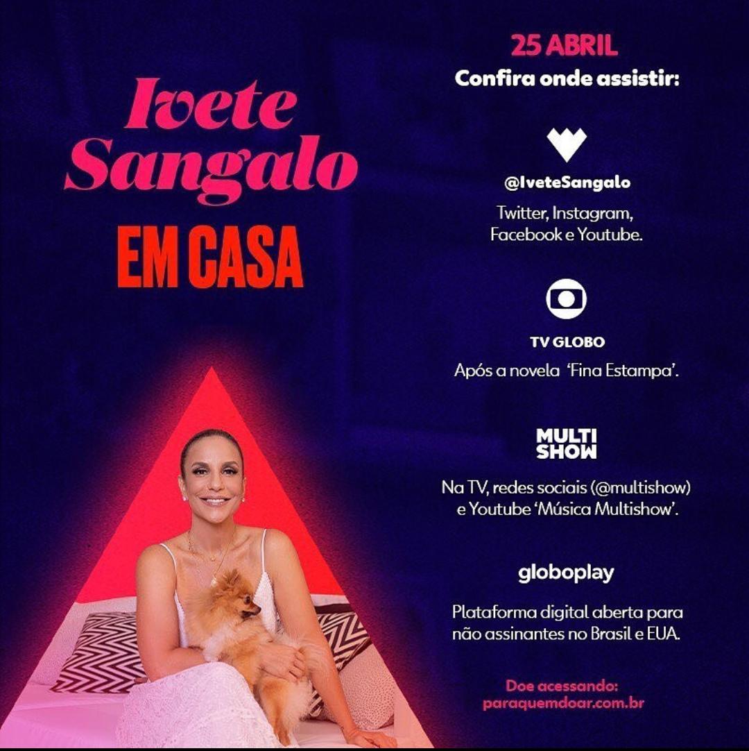 Com a micareta proibida em tempos de coronavírus, Ivete Sangalo promete levar toda a sua alegria e axé para dentro da casa dos fãs. A artista é a primeira atração do festival Em Casa, criado pela Globo.