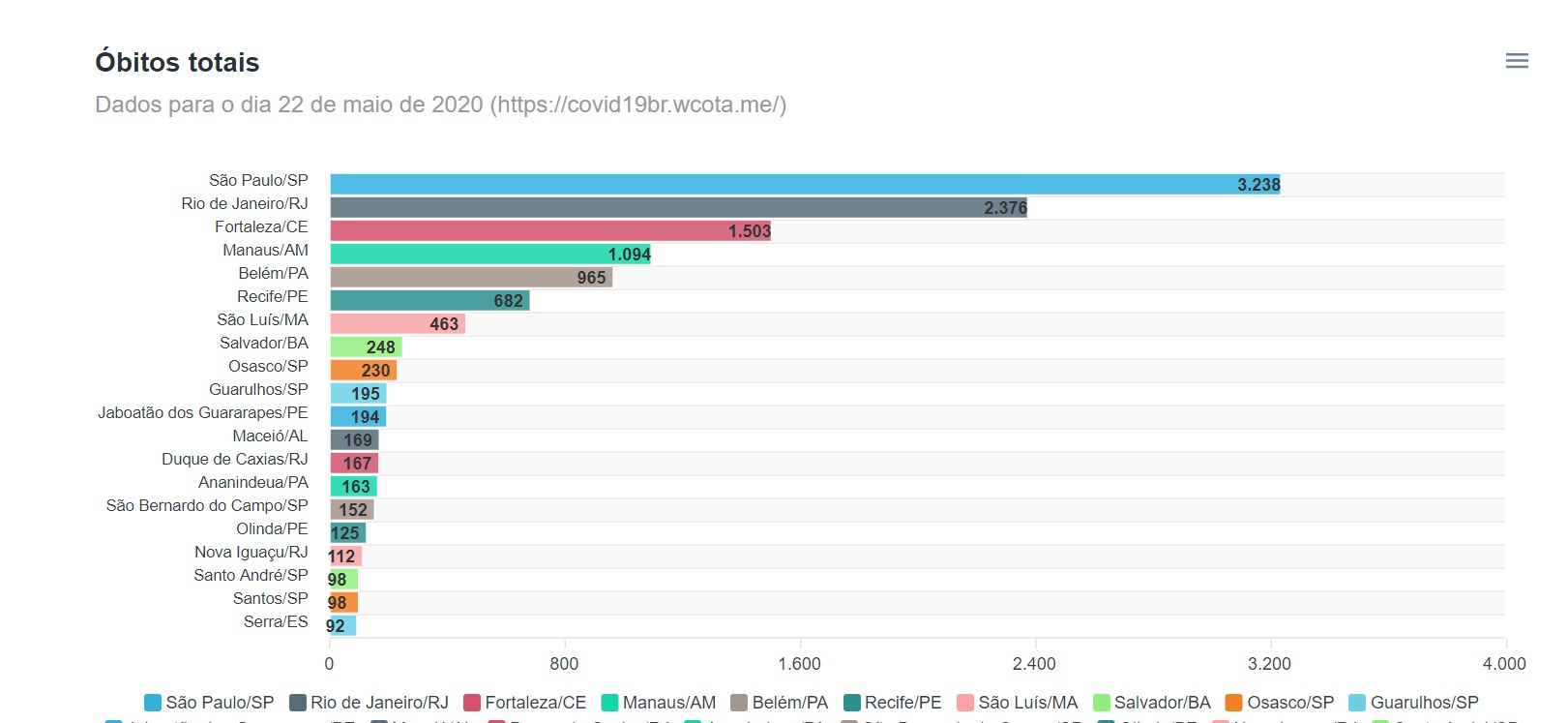 Conforme mostra o levantamento, apenas em Maceió foram 169 mortes. No cenário como um todo, Alagoas aparece em 16º posição com 4.916 casos confirmados.