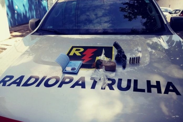 Foram encontrados um revólver calibre 38, com cinco munições, e 100 gramas de maconha.