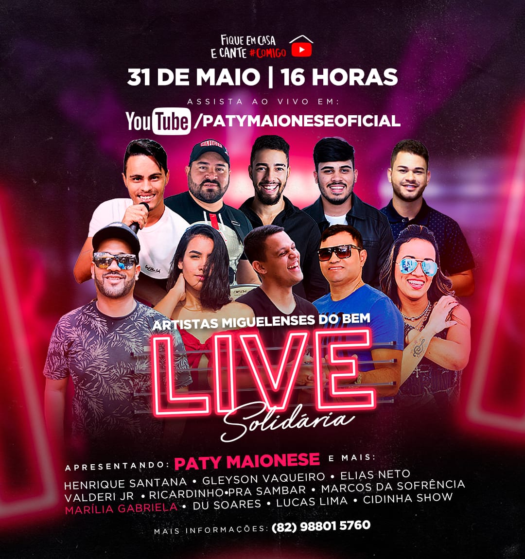 Paty Maionese lança mais um projeto solidário, movimentando todo mundo por uma boa causa durante este período de pandemia. A live solidária “Artistas Miguelenses do BEM” busca valorizar os artistas de São Miguel dos Campos e fazer uma corrente positiva para arrecadar recursos, alimentos e materiais de higiene para a classe artística local.