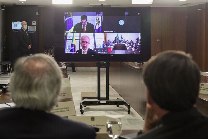 O presidente Jair Bolsonaro, ministros de Estado e os presidentes da Câmara, Rodrigo Maia, e do Senado, Davi Alcolumbre, acompanharam a sessão virtual, que também foi transmitida ao vivo nas redes sociais do TCU.
