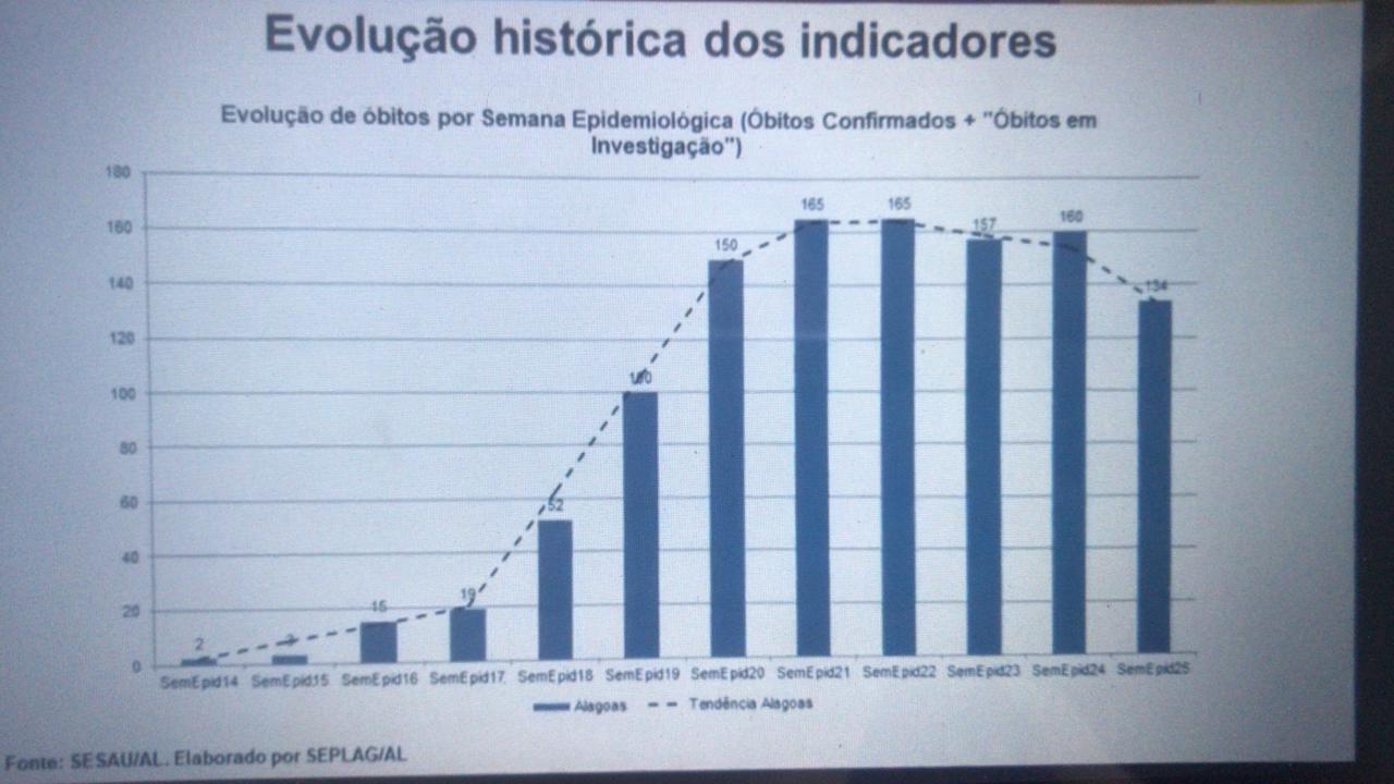 “No estado de Alagoas atingimos o maior número de óbitos na semana 21, em meados de maio, e o estado conseguiu com a oferta de leitos conseguiu estabilizar o atendimento à população”, explicou secretário de planejamento Fabrício Marques.