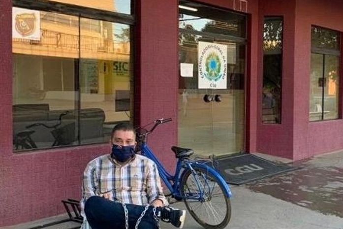 Uma semana depois de ser alvo de uma operação da Polícia Federal em uma investigação sobre irregularidades em contratos da prefeitura de Palmas, no Tocantins, o ex-prefeito Carlos Amastha (PSB) se acorrentou na porta da sede da CGU (Controladoria Geral da União) na cidade.