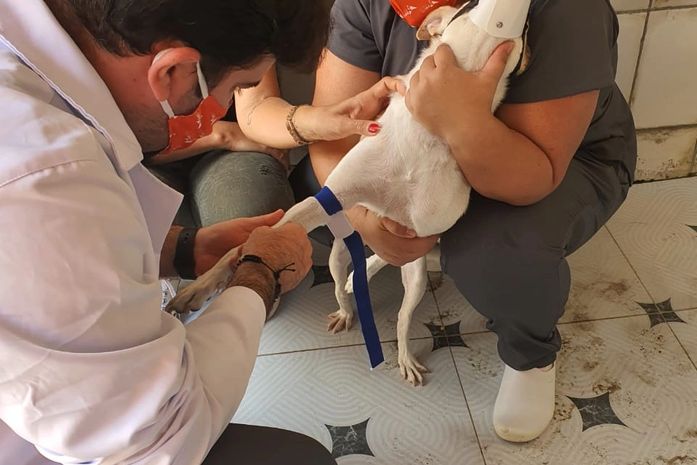 O serviço é ofertado a animais em situação de vulnerabilidade que passam pela triagem com teste sorológico, com o resultado negativo, inicia o protocolo de vacinação, que consiste em 3 doses, com intervalos de 21 dias.