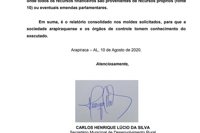 Ex-titular da pasta de Desenvolvimento Rural de Arapiraca apresenta relatório de suas atividade