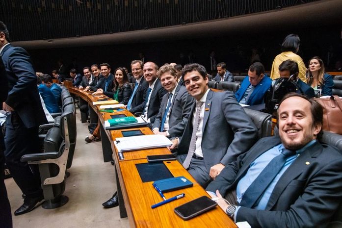 Integram a bancada do Novo na Câmara a deputada Adriana Ventura (SP) e os deputados Tiago Mitraud (MG), Gilson Marques (SC), Marcel Van Hattem (RS), Paulo Ganime (RJ), Alexis Fonteyne (SP) e Lucas Gonzalez (MG) e Vinicius Poit (SP).