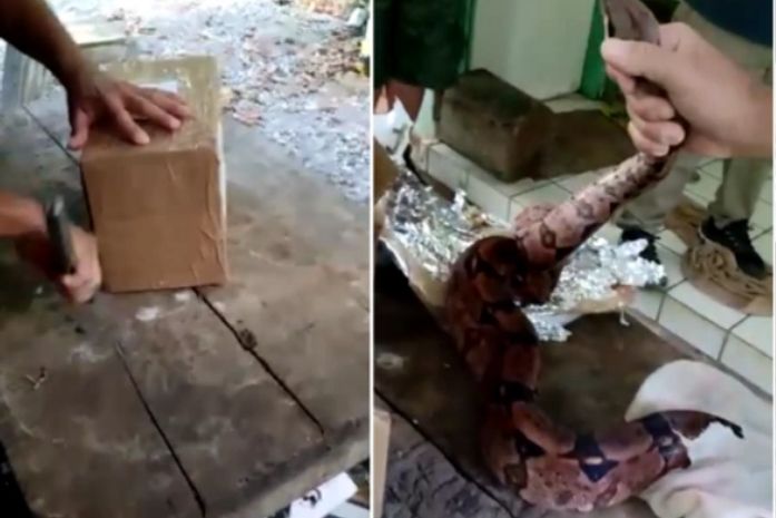 Funcionários dos Correios foram surpreendidos com uma correspondência inusitada na tarde desta terça-feira (15). Uma cobra viva foi encontrada dentro de uma caixa fechada e endereçada ao estado do Rio de Janeiro.