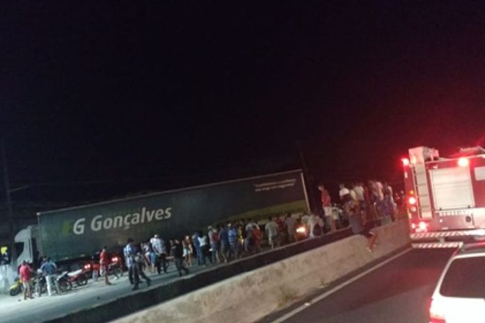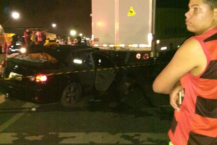 Conforme relatos de testemunhas, o condutor de um veículo Corolla, de cor preta e placa NMM-9700, ficou preso às ferragens do veículo, que colidiu com a traseira de um caminhão baú. Com o impacto da colisão, o carro ficou engatado ao caminhão.