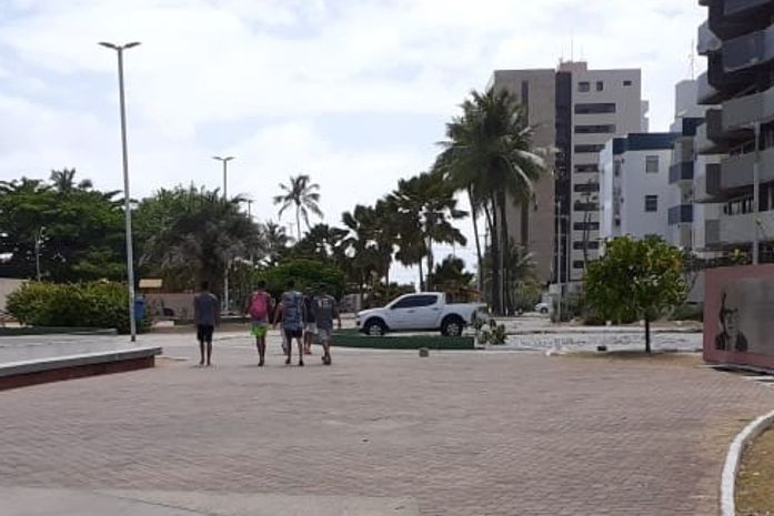 Retorno da caminhada diária, ao longe avisto os 4 meninos /adolescentes, todos pardos, quase pretos,que seguem em direção à praia de Jatiúca, utilizando o corredor Vera Arruda, como atalho.