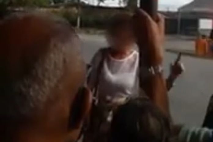 Em um vídeo filmado por outro passageiro, a agressora aparece falando de forma agressiva, se referindo, em voz alta e sem máscara, a uma mulher que teria furado a fila formada para a entrada do ônibus.