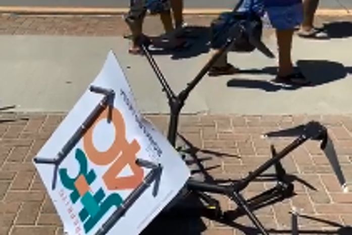 Populares que transitam pela Orla de Maceió registram, na tarde deste sábado (13), um drone utilizado na campanha do candidato a prefeito da cidade JHC (PSB) caído no calçadão.