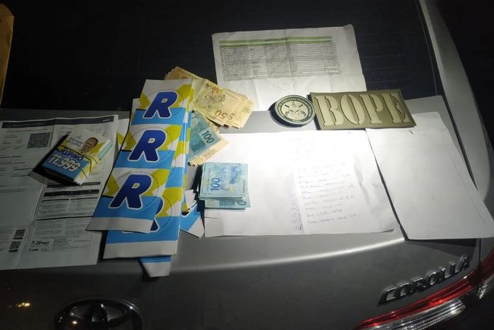 Os militares encontraram a quantia de R$ 3.105,00 duas listas de nomes e valores, vários adesivos e santinho de do candidato a vereador. A proprietária da residência, onde o veículo estava estacionado, também foi levada para delegacia para prestar esclarecimentos.