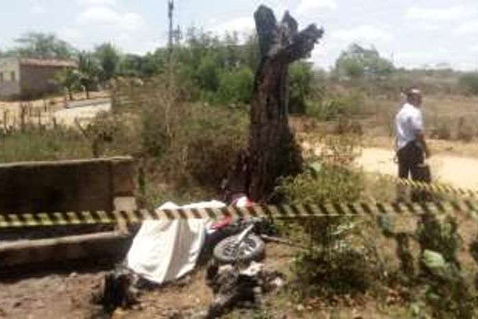 Um motociclista ao colidir o veículo com uma árvore nesta quinta-feira (19), na estrada que dá acesso ao Povoado Saúde de Cima, na zona rural do município de Batalha, Sertão alagoano.