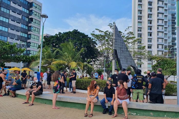 A classe artística protestou na última sexta contra o decreto que proibiu a execução de todo tipo de música ao vivo. A medida deve permanecer por 15 dias.