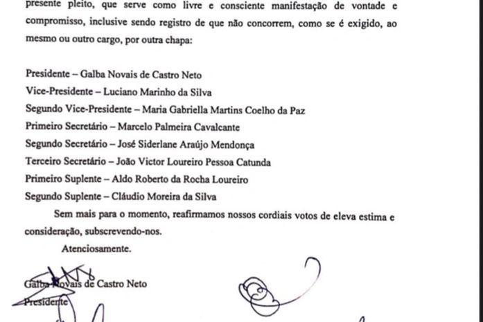 O anúncio foi feito através da conta pessoal de Galba Netto na rede social Twitter. “Em primeira mão, anuncio que o grupo dos 14 assina a composição da chapa para a eleição da mesa diretora da câmara de vereadores de Maceió”, disse o vereador.