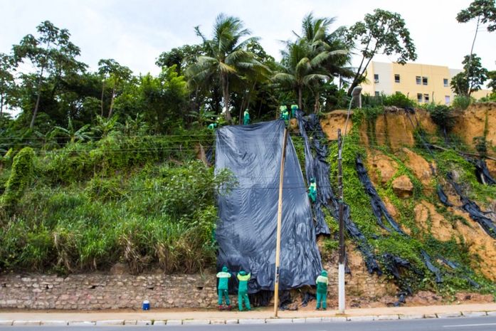 A Prefeitura de Maceió começou a implantação de lonas nas áreas de encosta da cidade que apresentam risco de desmoronamento. Na manhã desta quarta-feira (3), técnicos da Superintendência Municipal de Desenvolvimento Sustentável (Sudes) instalaram lonas num desses pontos críticos, na Avenida Leste Oeste, no bairro do Jacintinho.