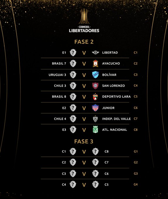 Os times enfrentarão, respectivamente, Ayacucho, do Peru, e Deportivo Lara, da Venezuela. Os jogos de ida e volta destas etapas ocorrerão entre as semanas de 10/3 a 14/4. Se a equipe nacional passar pelo Ayacucho, terá pela frente o Del Valle ou Chile 4 na fase seguinte da pré-Libertadores. Enquanto isso, o outro representante verde e amarelo, se eliminar o Deportivo Lara, enfretará ou San Lorenzo ou "Chile 3" na fase seguinte.