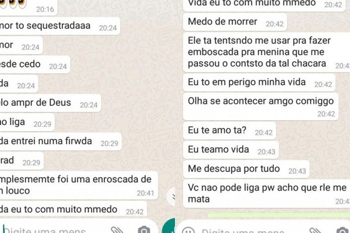 Com medo, a mulher enviou uma série de mensagens para o seu namorado. "Amor, tô sequestrada. Vida, entrei numa furada. Simplesmente foi uma emboscada de um louco. Eu só vim trabalhar. Me enganaram, vida. Eu fui muito burra", escreveu ela, como informa o G1.