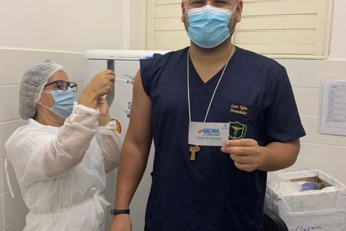 Outro profissional vacinado foi o farmacêutico da UBS, Lucas Nobre. Para ele, o momento traz um misto de emoções. “É uma mistura de alívio e esperança. Foram tantos dias auxiliando na batalha contra esse inimigo invisível e hoje recebemos essa dose de esperança para dias melhores”, contou.