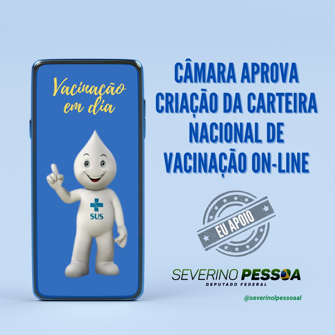 Um dos grandes defensores da criação do Cartão Nacional de Vacinação On-line, o deputado federal Severino Pessoa (Republicanos/AL), comemorou, nesta quinta-feira (29), a aprovação do projeto que tem como intenção substituir o cartão de vacinação em papel pelo acesso a um sistema com os dados do usuário a fim de acelerar o atendimento no Sistema Único de Saúde (SUS). Após aprovação na Câmara a matéria segue para apreciação do Senado.
