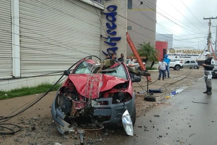 Conforme a polícia, o condutor perdeu o controle direcional do carro, saiu da pista de rolamento e colidiu com o poste da Equatorial.
