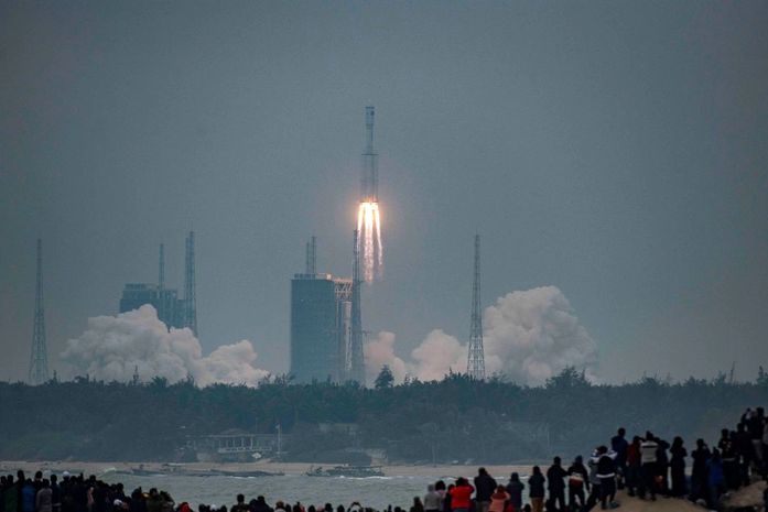 O foguete Longa Marcha CZ-5B tem, no total, 57 metros. Mas seu compartimento de carga, na “ponta” do foguete, tem bem menos, cerca de 27 metros e 25 toneladas. O restante do foguete, se desprende do compartimento de carga assim que sua função no lançamento é cumprida. Após o desacoplamento, esses estágios podem voltar à órbita da Terra.