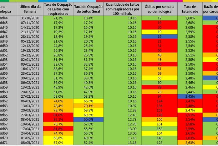 Antes do anúncio das mudanças, o secretário de Planejamento, Gestão e Desenvolvimento, Fabrício Marques apresentou os dados dos indicadores dos últimos 15 dias (confira na galeria abaixo), que determinam a tomada de decisões. A taxa de ocupação de leitos com respiradores apresenta queda há algumas semanas, destacou.